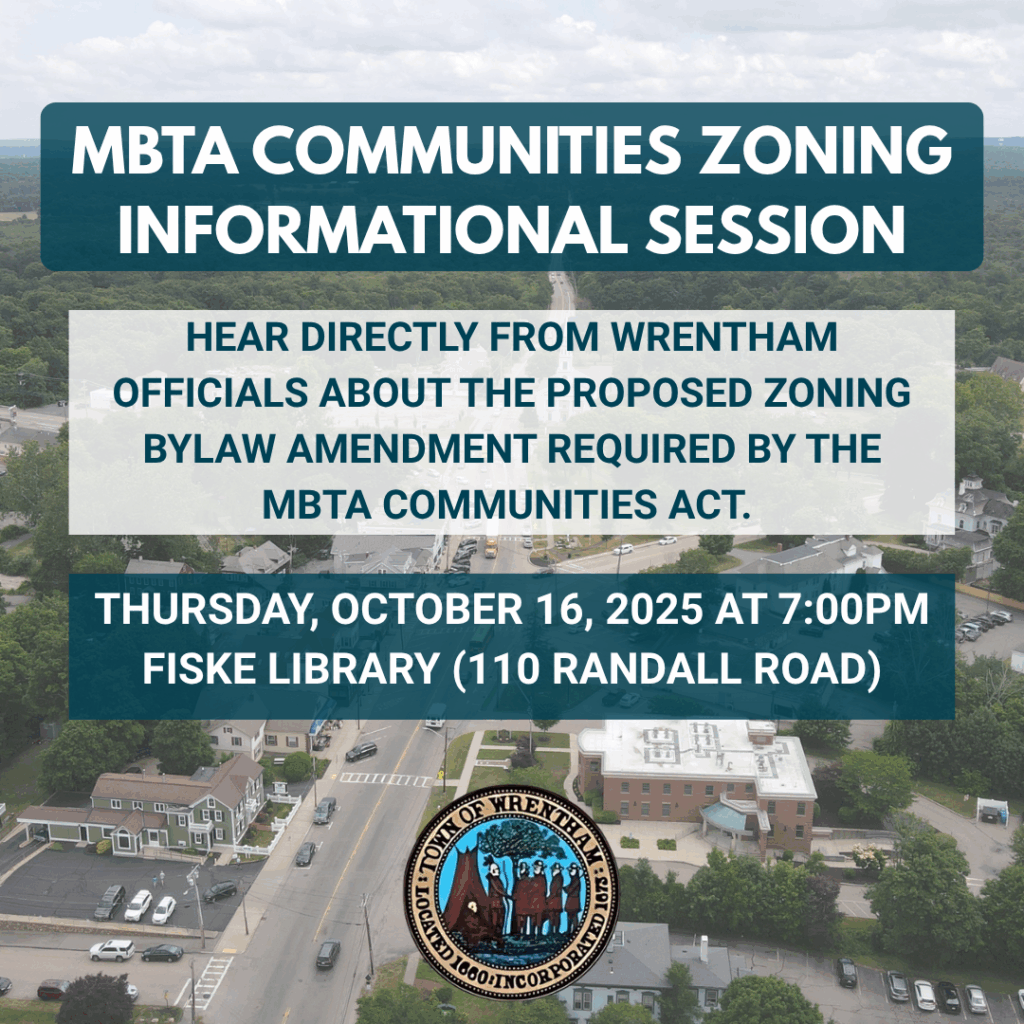 “The outreach session is intended to inform residents on what the MBTA Communities Act means for Wrentham and the specifics of the local proposal,” said Town Manager Michael King. “We encourage residents to attend and ask questions ahead of the Fall Town Meeting vote.”